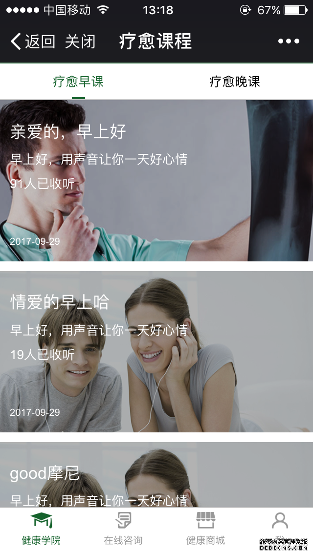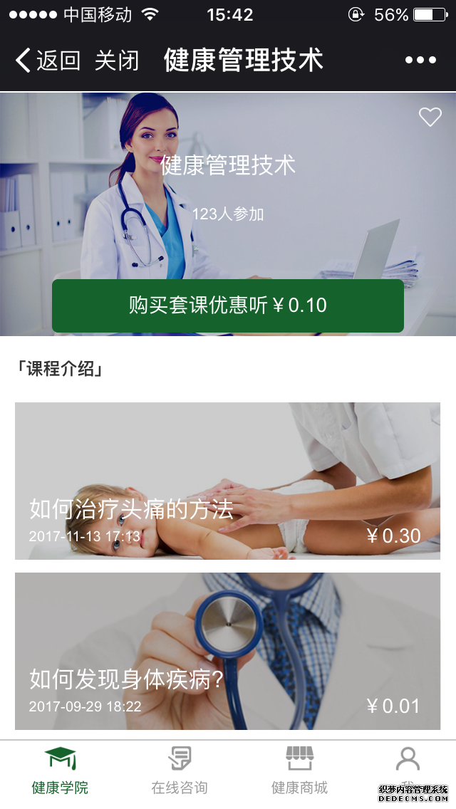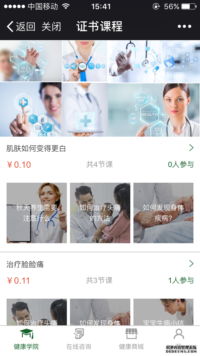 课程类别:按课程类别展示课程,课程类别可设置视频课程、音频课程、图文课程、付费课程等多种属性。